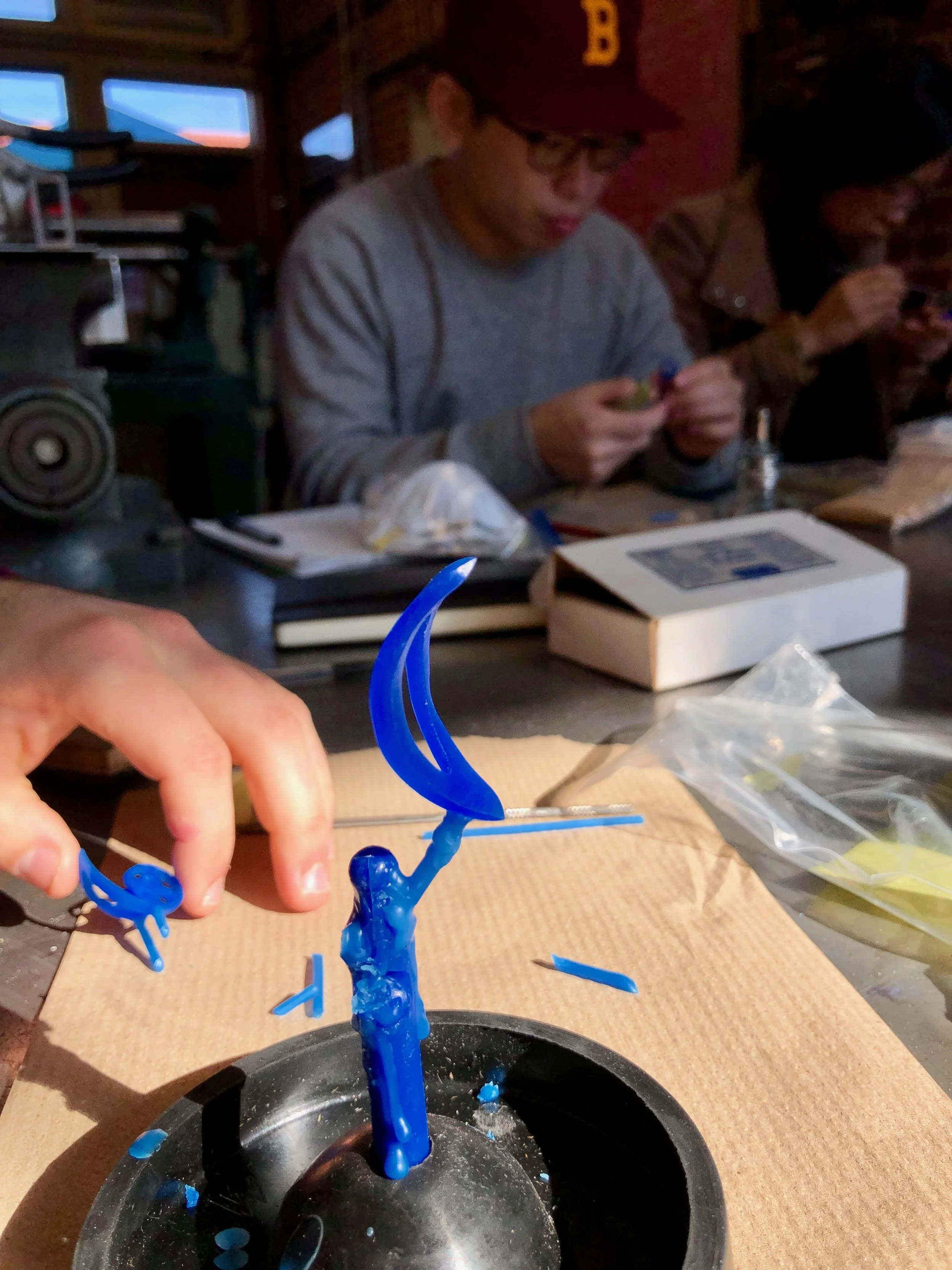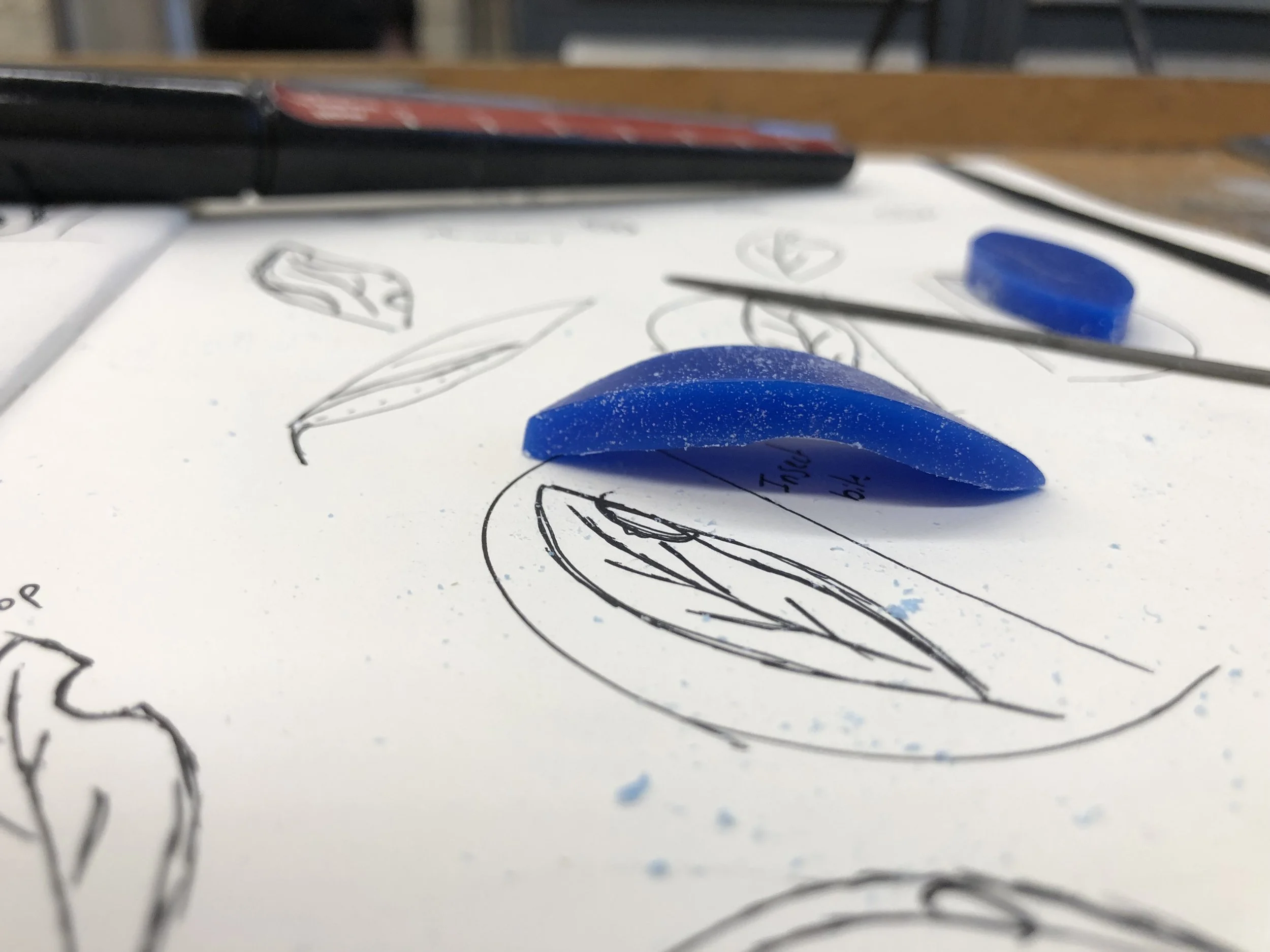 The challenge of this project was to create a sculptural piece that weighed less than 10g in sterling silver and would not fit into three eight cubic centimeter boxes. The project was inspired by the weightlessness and elegant curve of autumn leaves. As such, it is intended to adorn a desk and gently rock like a fall leaf swaying in the breeze.