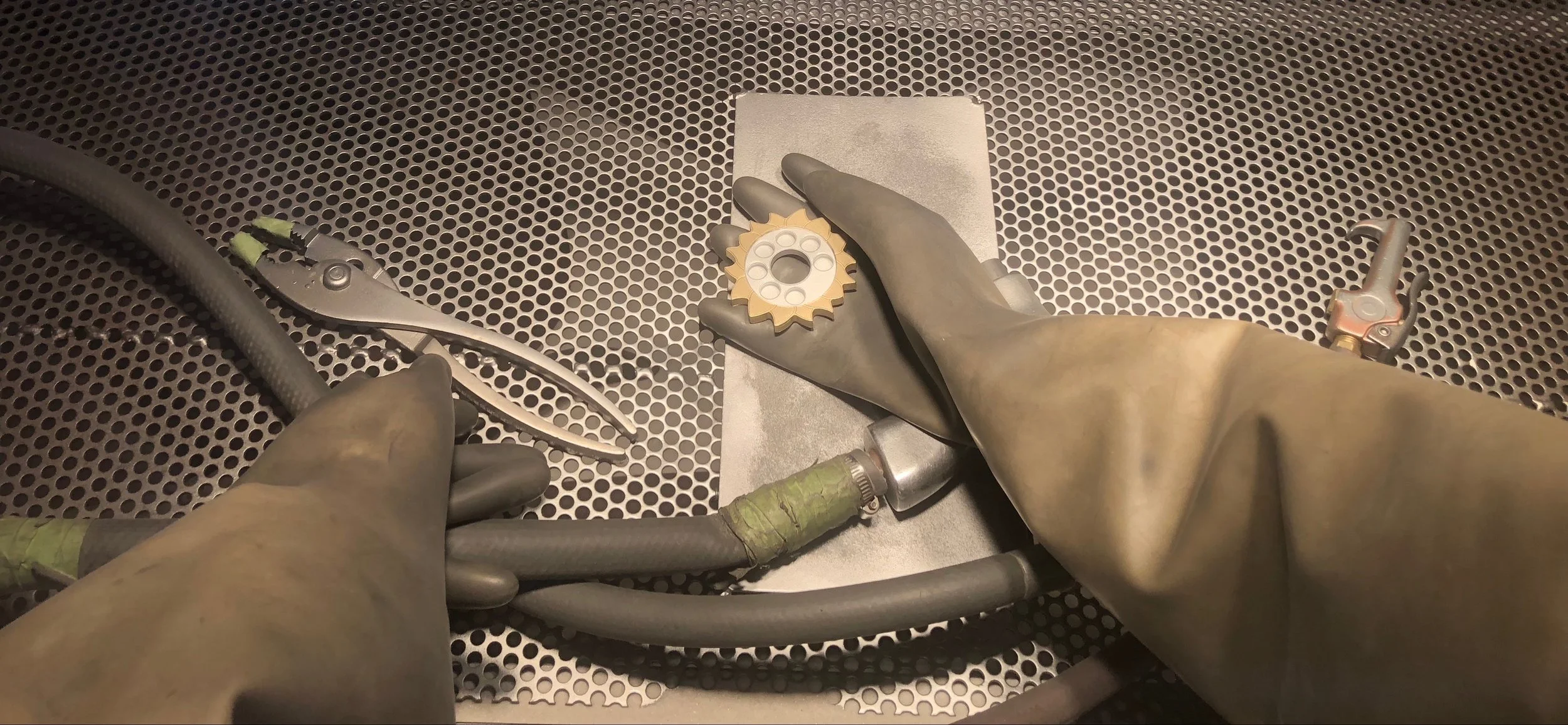 View from the eyes of the bead blaster